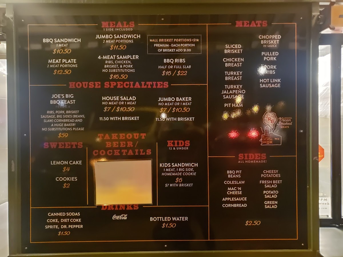 Welcome to Joe's Real BBQ, where flavor meets comfort in a lively atmosphere. Located at 301 N Gilbert Rd, Gilbert, AZ, Joe's serves up mouthwatering dishes that embody the essence of Southern-style barbecue. The standout item on the menu is the Joe's Big BBQ Feast, featuring tender ribs, smoky pulled pork, and perfectly cooked brisket, all served with delectable sides like homemade cornbread and a choice of two big sides. For lighter fare, try the Joe’s BBQ Chicken Salad, which combines adobo chicken with vibrant salad greens and a spicy corn and bean salsa.